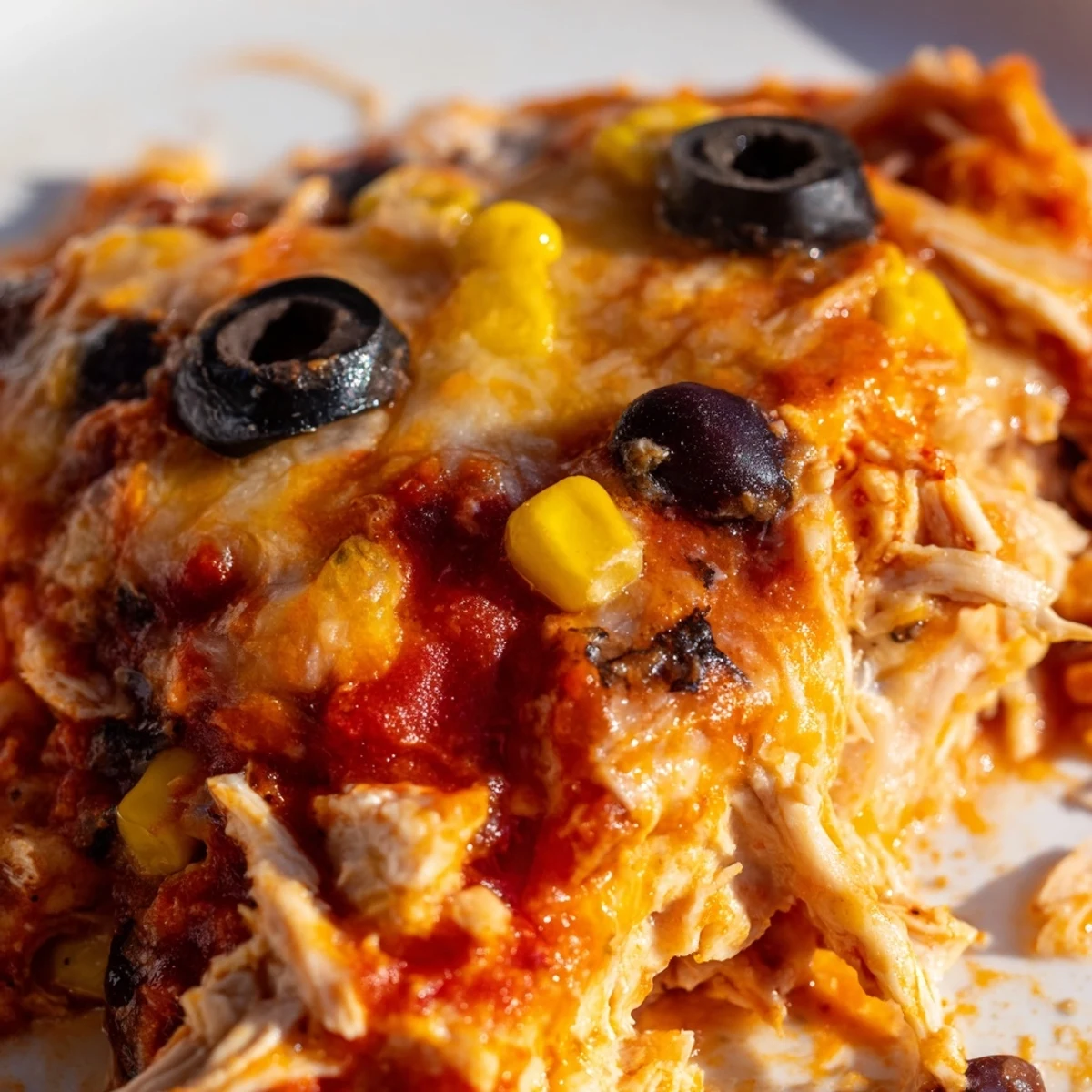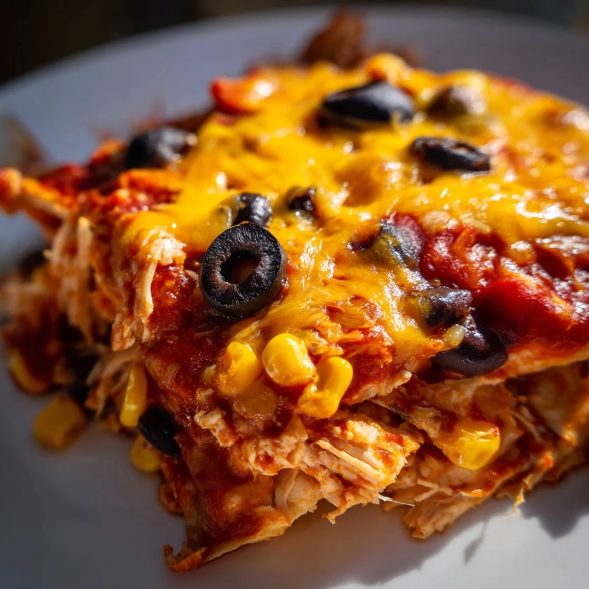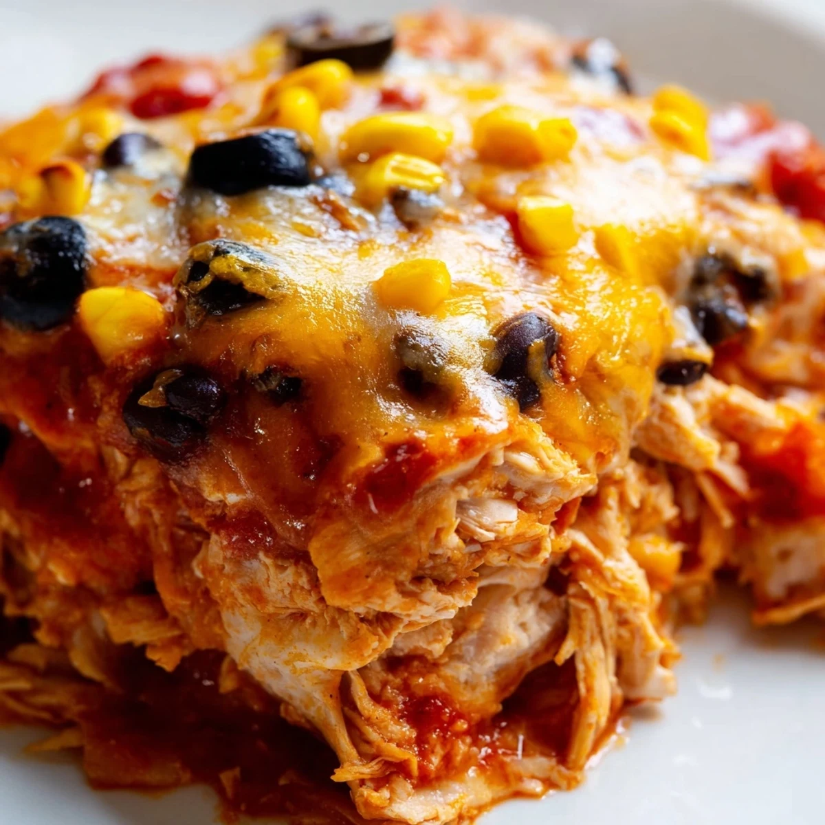 This satisfying Tex-Mex casserole combines tender shredded chicken with a well-seasoned filling of black beans, corn, and aromatic spices like cumin and chili powder. The dish builds rich flavor through multiple layers of soft tortillas, vibrant red enchilada sauce, and a generous amount of melted Mexican cheese blend. After baking covered to meld the flavors, the top gets uncovered for those final golden, bubbly minutes that create an irresistible cheesy crust. Perfect for feeding a crowd or meal prep, this hearty bake delivers restaurant-quality Tex-Mex comfort with minimal hands-on effort.