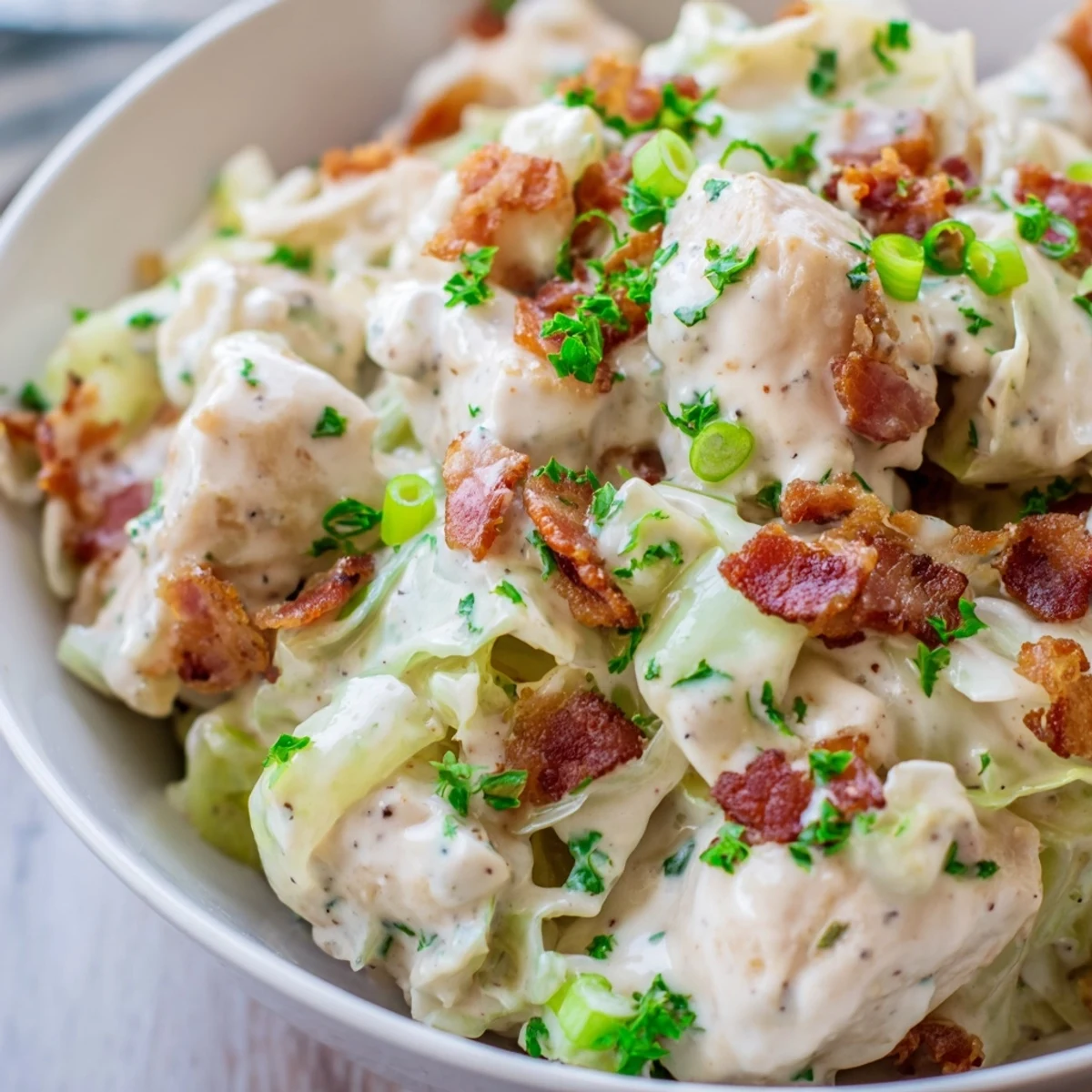 These hearty bowls combine tender bite-sized chicken pieces with smoky crispy bacon and fresh sliced cabbage, all enveloped in a velvety homemade ranch sauce. The creamy blend of heavy cream, sour cream, and cream cheese creates a luscious coating that clings to every ingredient.