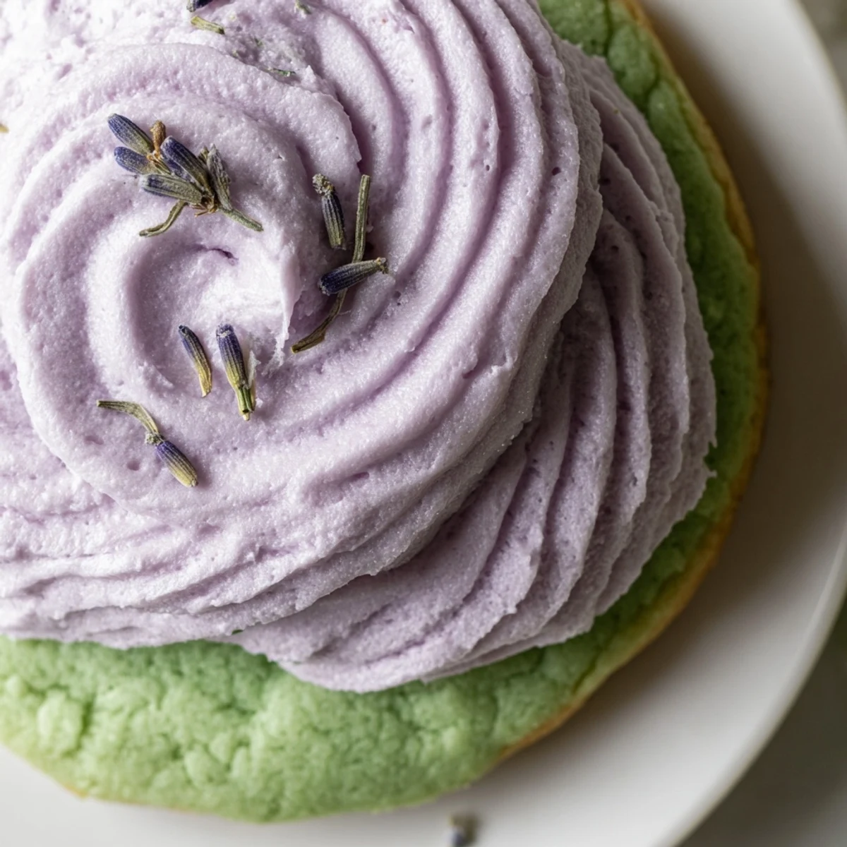 The cookie dough features premium culinary-grade matcha powder, creating soft, subtly green treats with a refined flavor profile. After baking to tender perfection, each cookie is crowned with a light and fluffy lavender frosting made from ground culinary lavender buds.