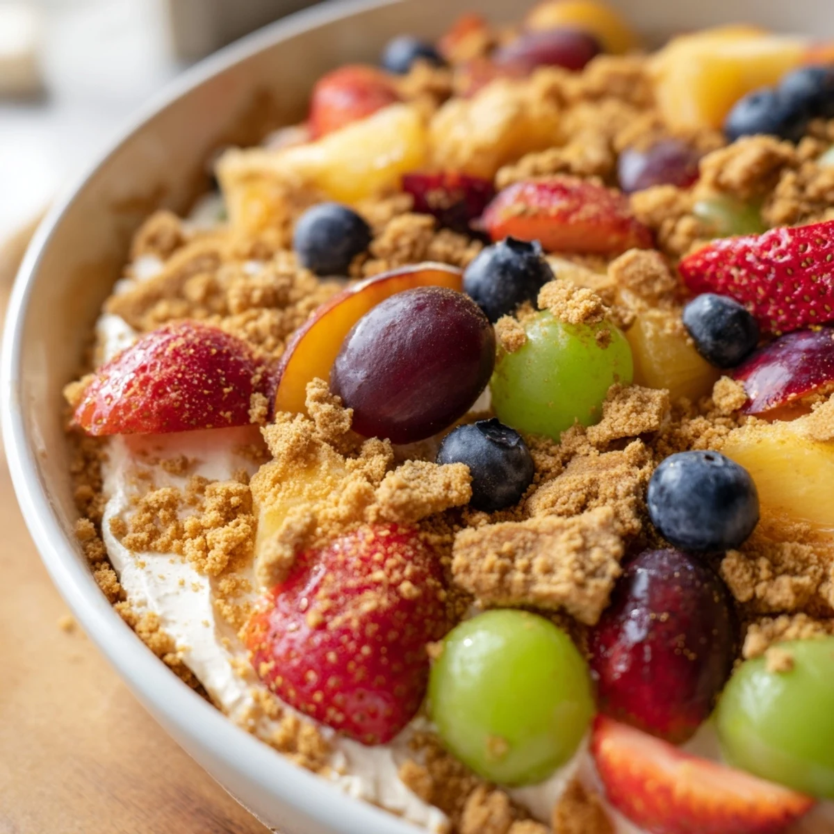 This refreshing dessert blends the best of summer fruit with creamy cheesecake flavors. Ripe peaches, strawberries, blueberries, grapes, and pineapple create a colorful medley, all folded into a light vanilla cream cheese mixture. The crowning touch? A buttery cinnamon-brown sugar crumble baked until golden and crisp. Perfect for potlucks, barbecues, or weeknight treats, this comes together in just 35 minutes and serves eight generously.