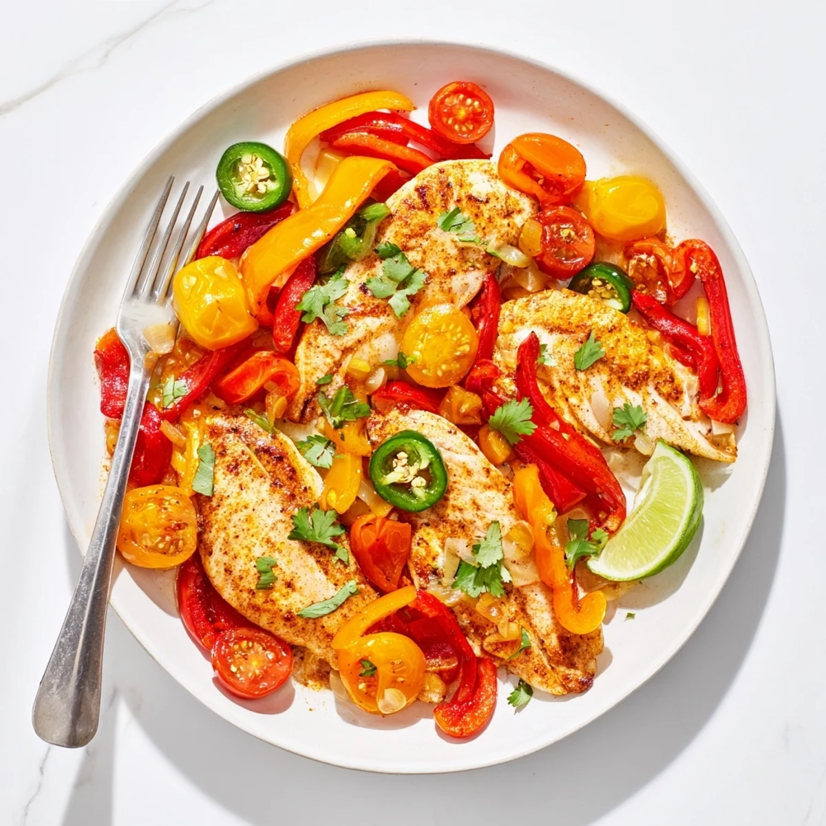 This vibrant skillet combines mild white fish with a medley of roasted red and yellow peppers, spiced up with jalapeño slices, smoked paprika, cumin, and chili flakes. The tilapia fillets are seared until golden, then nestled into a savory tomato-based pepper sauce that simmers until flavors meld perfectly. A finish of fresh lime juice and cilantro adds brightness to each serving. Ready in just 35 minutes, this gluten-free and dairy-free main dish serves four and pairs beautifully with steamed rice, quinoa, or warm crusty bread.